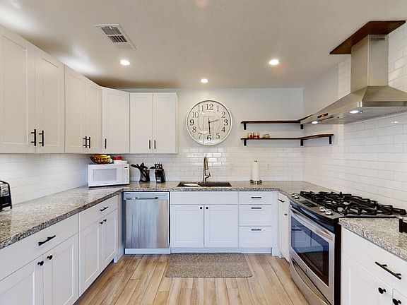 Welcome Home! This is a cozy home located on a large lot in Thousand Palms, California. The house has three bedrooms and two bathrooms with Laminate flooring throughout. The kitchen has been remodeled with granite countertops, stainless stove/oven and dishwasher. The front yard is completely fenced in and the backyard is large with ample room for RV parking for a 40 foot motorhome and there is a 30/50 amp electrical outlet. This home is perfect for anyone needing additional space for cars or work trucks. The home is located close to the I-10 Freeway and within driving distance to shops and dining. Welcome home!