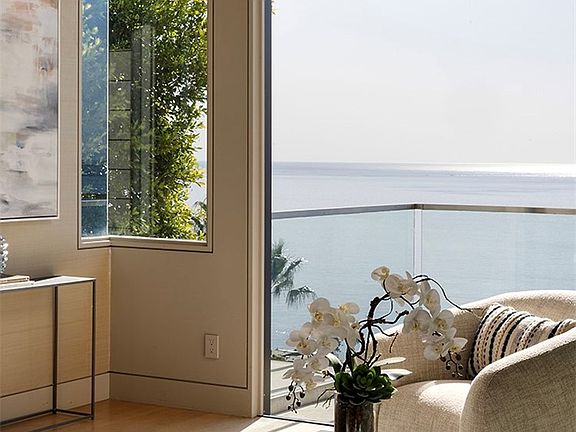 Discover unparalleled coastal living in the sought-after Coast Royal neighborhood of Laguna Beach. Designed and perfected by renowned architect Mark Teale, this stunning contemporary residence boasts panoramic views of the Pacific Ocean, Catalina Island, and the sparkling white-water coastline from every level. Enter through the front door and be greeted by the sensational views from the foyer. Off of the foyer, the primary suite features a wall of windows framing Catalina sunsets, a large closet, and a resort-like bath, complete with soaking tub and walk-in shower. Descend to the main level, which has an open floor plan, including the living room with stone fireplace, formal sitting area, stunning powder room, chef-inspired kitchen, dining area, and bi-folding doors that effortlessly blend the indoor with the outdoor. The kitchen showcases the finest in design and function with top-tier Miele appliances, a Sub-Zero refrigerator, sleek Wenge cabinetry, limestone countertops, and dual wine refrigerators. The lower level features two additional bedrooms, each with their own bathroom, a private office space, and a sizable, low maintenance backyard for relaxing, al fresco dining, and entertaining guests. Additional highlights include a two-car garage plus two additional parking spaces in the driveway, laundry room, and zoned air conditioning. Every detail of this custom home exudes luxury and refinement, creating a lifestyle of unrivaled coastal elegance.