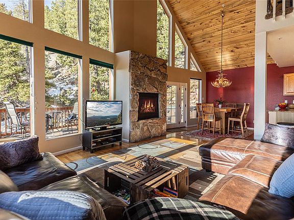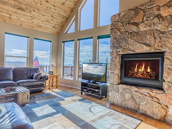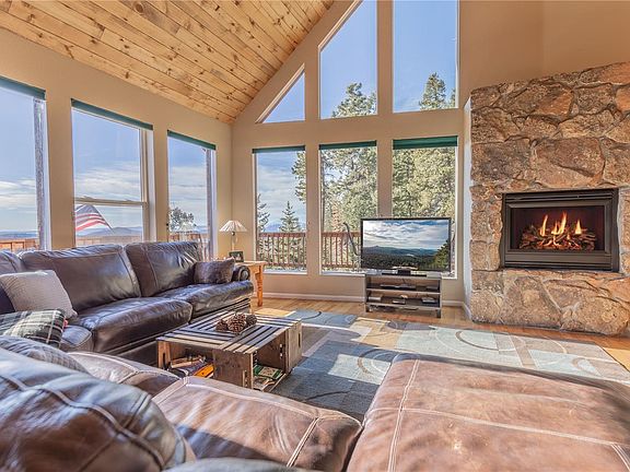 This is the lifestyle! Wake up to breathtaking Pikes Peak views or enjoy from your cozy living room with walls of windows. Main living area is light and bright for all types of entertaining indoors or outdoors on a wrap-around deck, or just enjoy a private moment in the hot tub watching wildlife or seeing the stars. Upper level features a Loft with beetle-kill pine ceilings and private deck. This also leads to a Master Bedroom with incredible views and updated Master Bath. Lower level offers views from the family room which has a custom wood ceiling, laundry and expansive utility room with Central Vacuum and Fire Protection System. Trails are nearby that lead to Staunton State Park. You won't be disappointed with the mountain living this home has to offer!