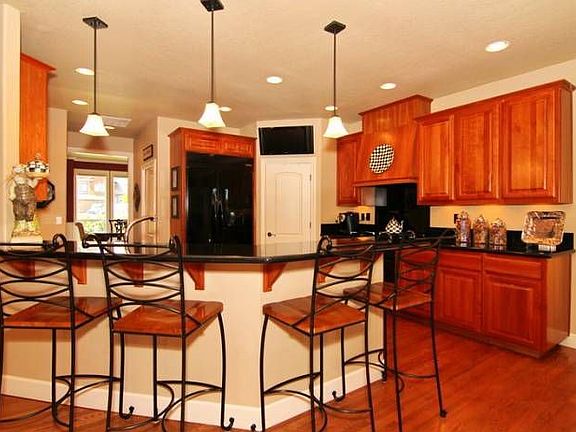 Riverfront opportunity in a great neighborhood with private dock. House is like new with all the high end finishes; cherry cabs, hardwood floors, butler's pantry w/wet bar, granite counters etc. Lots of outdoor living space with Tiger wood deck, hot tub and 2 patios. Great room floor plan and master on the main! Sides to greenbelt for added privacy.