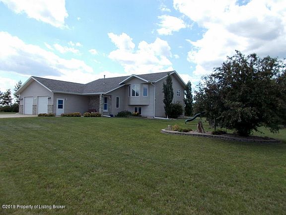 SPACE AND SUNSHINE await you with this beautiful country property just minutes north of Dickinson. 2.338 acres with abundance of trees and established yard. Stylish split foyer home with large foyer, cathedral ceilings, large custom kitchen with oak cabinets, built in hutch/desk area and island. Spacious family room, 4 bedroom 3 bath home. Large laundry room with direct access to the attached garage. 28' X 32' shop.