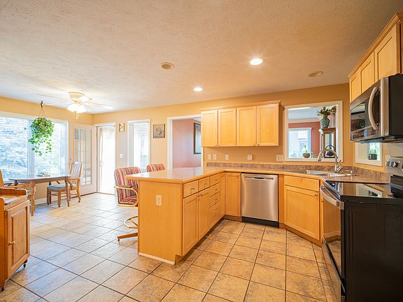 Huge Custom Built ranch on corner lot with tons of upgrades! When you walk into this house, it just feels like home. Main level features a Spacious kitchen with maple cabinets, ample counter space, breakfast bar & several newer appliances: Stove & Fridge (Dec '23), Dishwasher (21). Primary bedroom is very spacious and has a beautiful ensuite bathroom w/double sinks, jetted tub, and walk-in shower with new glass door (24). Third bedroom is being used as an office, and U-shaped desk will stay, but is removable. There is also a Light & bright 4-seasons room perfect for reading or your morning coffee. Basement is like a whole extra house with 2 entries--one from garage, so it could be rented out or would be perfect for an in-law suite! The fully finished basement features 9x8 kitchenette (all appliances stay), 2 good sized bedrooms, a family room with fireplace, built-in display shelves, 2nd laundry, full bath, and lots of storage. This is a great house for entertaining! Outside you'll find a fully fenced yard, beautiful new concrete patio w/brick border (23), a nicely manicured lawn w/irrigation system, and a few mature trees. Oversized 2 car garage. Bonus upgrades include: Whole house Generator, 2 water heaters, high efficiency furnace (18), irrigation system, security system, & gas line for outdoor grill. New A/C in 2018, New Roof in Nov 2019. Some fresh paint, new $6K patio in 2023. This was formerly a builder's home. Come check this one out before it's too late!