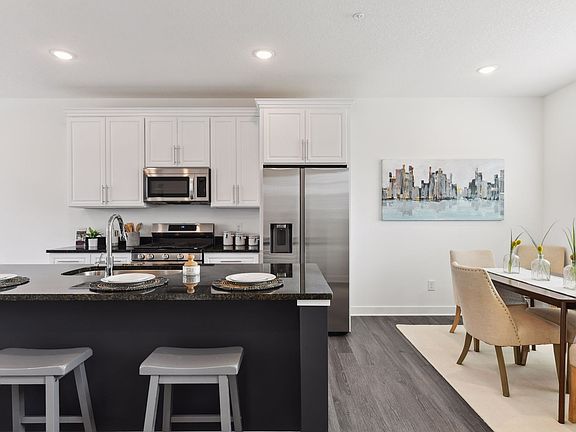 Beautiful townhome, nested in Clover Field Neighborhood. It's conveniently located near parks, ponds, walking trails, within minutes of schools, community center & much more. The townhome will offer a very spacious kitchen with a large island, family room, dinette, 9ft ceilings on the main floor, and finished lower level bedroom. Upper level features: three bedrooms with vaulted ceilings for the master, and laundry. The townhome also includes electric fireplace but decorative only and modern stainless steel appliances.