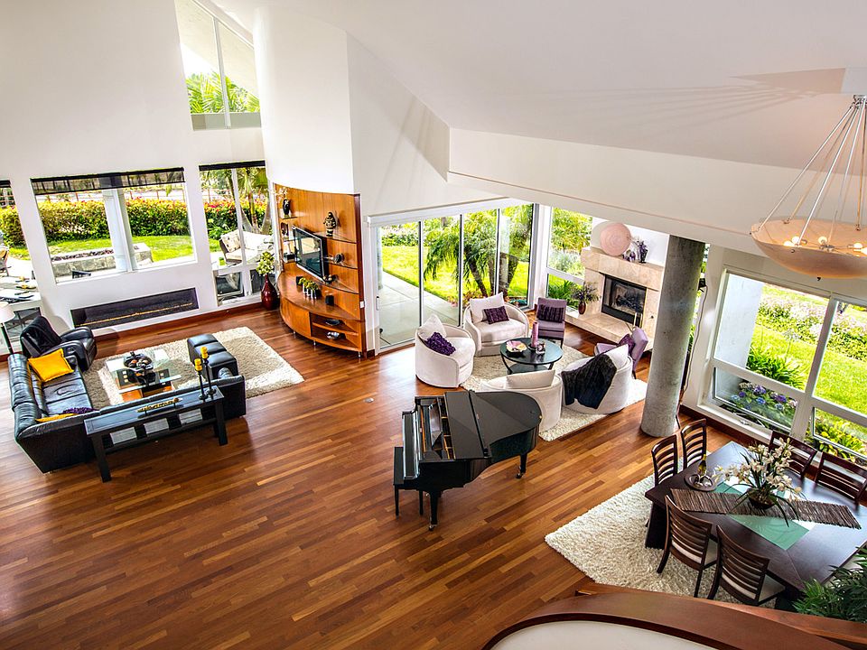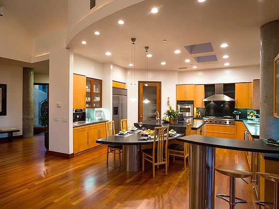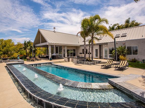 Single-story contemporary Olivenhain ranch home was custom-designed not only to stand as pristine architectural craftsmanship but also to serve as a quiet, tranquil space w/ scenic views. For the art-lover & horse/animal-lover alike, this immaculately-maintained property features a large great room w/ 26ft. ceilings, Brazilian cherrywood floors, & the essence of indoor/outdoor living w/ large glass slider doors, & picture windows. All bedrooms down w/ large loft-like bonus room upstairs plus 1 bed/bath. Beautifully manicured, low maintenance grounds with outdoor entertainment area including pool, spa, fire pit, built-in bbq and large patio & lawn spaces. Showcase your beautiful artwork under custom light fixtures appointed specifically for such pieces. Enjoy the privacy that comes with rural living and the convenience of being just minutes away from the beach! Large windows and sliding glass doors allow for ample natural and interior light. Apart from the main living areas there are 4 bedrooms with 4 baths, a designated office, plus an extra room which can serve as a craft room, wine room, kids study area the possibilities are endless! **The upstairs bedroom with its own private entrance may serve as nanny/inlaw quarters or guest room with its very own bath. Plus adjacent to this bedroom there is a large loft area which may serve as game/media room or secondary office.*** Designated area for horses with trails nearby, side yard w/ dog run, room for RV/boat parking. Car enthusiasts love the oversized 4-car garage (approx. 1,280 sq.ft) w/ lots of storage and circular driveway w/ plenty of parking.
