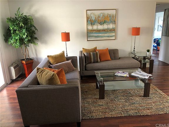 Great Opportunity to purchase a move-in ready condo! Located within the "Pinewood Condominiums" gated community, this single story, 2 bedroom/2 bath home offers a spacious living room with a fireplace. The kitchen features: Granite counter tops, plenty of cabinets, including a large pantry, a brand new range & microwave plus recessed lighting and a breakfast bar. The home has beautiful wood laminate flooring in the family room, hallways and bedrooms with tile in the kitchen and bathrooms. The master bedroom has an en suite bathroom, it has double closets, giving it a lot of storage space. The secondary bedroom is also a nice size. The hallway has a full closet for extra storage. Ceiling fans throughout, along with scraped ceilings. It also features an enclosed & private back patio, with a dual pane sliding door leading out. It also has a convenient gate--to access the carport parking spot, which is directly adjacent--#99. The parking spot also includes a storage cabinet. There is no one above or below. There is a community pool & clubhouse. The HOA pays for water, trash and outside landscaping. It is pet friendly--1 dog up to 25 lbs and 1 cat allowed. It is in a great location--a safe and serene lifestyle. In the heart of Orange--near Chapman University, Old Towne Orange, various nearby parks and proximity to plenty of shopping centers and restaurants-- within walking distance. Its central location with easy access to the 22, 55, and 57 freeways make it perfect for commuters.