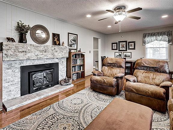 Absolutely charming brick ranch on 8.7+/- acres in Southwest Randolph County! This 2-bedroom home features hardwood floors throughout, a beautifully renovated kitchen with quartz countertops, island & appliances remain! Cozy living room with fireplace, dining room (currently used as an office), and a stylish updated bath with ceramic shower. Breezeway with laundry hook-ups (not heated, not included in sq ft). Enjoy the beautiful weather on the back deck overlooking the nice back yard! Three attached garage spaces and a concrete circle drive offer plenty of parking! Two storage buildings remain. Walk-in basement offers great storage. Great private rural location!