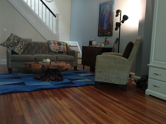 Beautiful, rarely available porch front home in Historic Hampden. Eat-in kitchen has SS appliances, granite countertops, tiled backsplash. Original hardwood floors and crown molding. Gorgeous views of Wyman Park from deck and 2nd BD. Master walk-in closet/small 3rd BD. Heated tile floor in main bath. Finished basement with 15ft exposed stone walls. New roof in ''13. LA related to owner.
