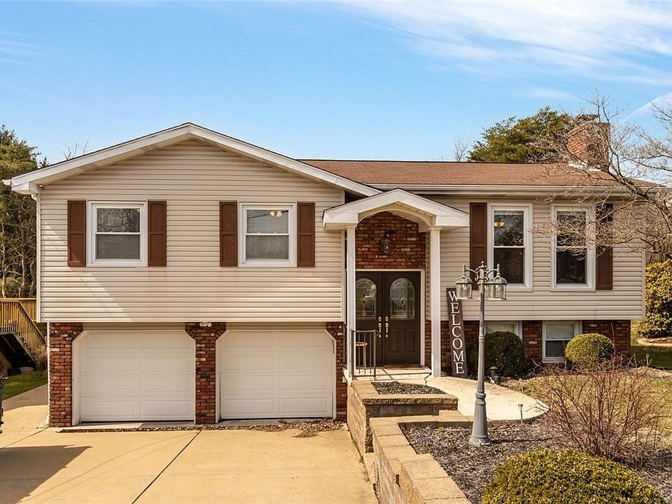Completely updated three bedroom, two and one-half bathroom home in Aliquippa, close to 376 and the Pittsburgh Airport. There is an updated spacious kitchen with stainless steel appliances, granite countertops, tile backsplash, ceramic tile flooring and plenty of beautiful wood cabinets. The dining room with French doors and chair rail is off of the kitchen. There is a temperature-controlled sunroom with a cathedral ceiling and fan. The lower level large family room has a fireplace, large glass sliding doors and fabulous wood flooring. There are three spacious bedrooms with ample closet space. Lots of storage areas are on the lower level. Appreciate the two-car integral garage and additional detached two-car garage with a loft. The expansive, gorgeously landscaped yard has a fire pit surrounded by a six-foot vinyl fence. There is also composite decking. This home has been impeccably maintained, just move in!