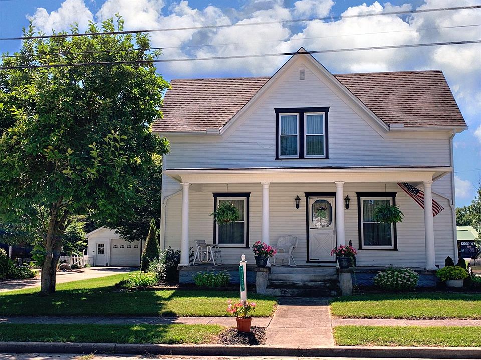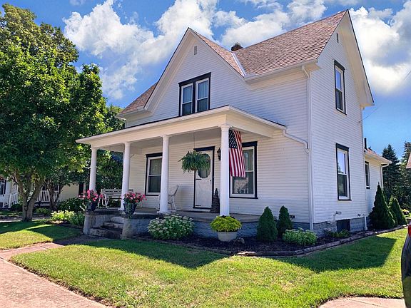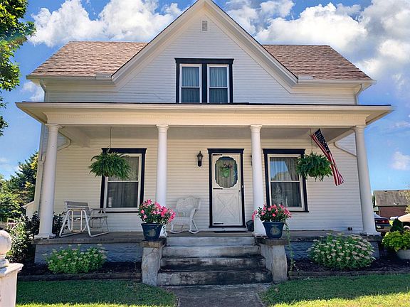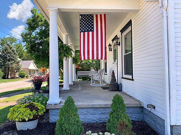 Well maintained 2 story colonial w/Big front porch. Lots of natural woodwork, hardwood floors. Possible 4th bdrm. Shows beautifully. Lots of flowers. Barn garage with workshop detached. Downstairs drapes DO Not convey. All sheers & rods stay.