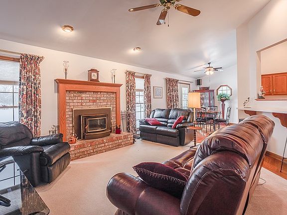Pride of ownership is obvious in this solid brick home custom built for current owner! Vaulted cathedral ceilings and pass through from Kitchen to Living room keep living space open. Walk outs from the Master bedroom & breakfast nook to a pastoral backyard. New Stainless refrigerator and Dishwasher! Oven/Stove is quality Jenn-aire w/ down drafting vent for the serious cook! Natural wood work, HUGE Jacuzzi tub, patio, deck and basketball courts in backyard for your enjoyment! Large front porch is a great space to sit in the shade and watch the world go by! Basement is plumbed for full bath!