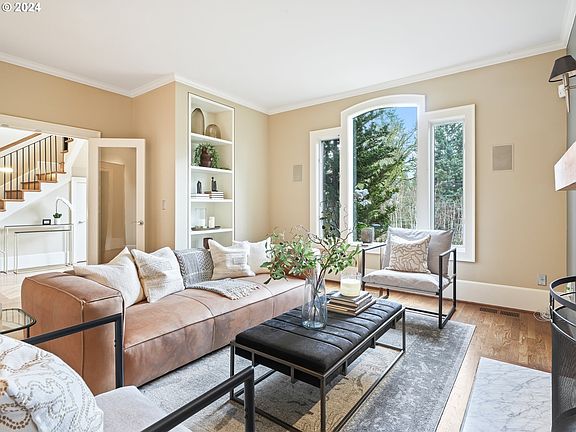 Kings Heights villa, nestled at the end of a dead-end street.This luxury residence overlooks the vast expanse of Forest Park and opens to over 10 miles of hiking/running trails. The vine-covered exterior welcomes you into a timeless elegance. Inside you're greeted by soaring ceilings + hardwood floors, setting the tone for what's to come. Formal rooms w/classic touches provide the perfect setting for entertaining, while numerous outdoor spaces beckon you to embrace the beauty of nature. The living room boasts built-ins, a fireplace, and French doors out to a covered patio. The formal dining room is perfect for dinner parties + features an elegant butler's pantry. This gourmet kitchen will amaze you w/marble countertops, a massive island housing two addl Sub-Zero refrigerators, two dishwashers, a wine fridge, + a WOLF gas range all awaiing your culinary endeavors. For added convenience, a dumbwaiter can transport groceries from the garage to the kitchen w/ease. The breakfast nook invites you to start your day w/a view from inside, or out on the deck al-fresco. The family room offers copious storage + serves as a cozy retreat for casual gatherings. On the main floor, a bedroom suite awaits, w/plush carpets, a tiled shower, + ample natural light. Upstairs is the primary bedroom w/hardwood floors, a gas fireplace, + French doors leading to a private deck. The en-suite bath has a large shower and a soaking tub, marble vanity, an amazing walk-in closet, + W&D hookups for added convenience. There are two addl bedrooms, both w/ new carpets, one w/a deck + the other w/a built-in desk, closets, + cozy platform bed. These rooms are separated by a full bath. For more space the lower level bonus room offers many opportunities. Outside, enjoy views from the Italian-tiled deck, where a hot tub beckons below, amidst manicured gardens + a level lawn--the perfect backdrop for gatherings or quiet moments. Minutes to NW 23, Zoo, Arborboretum. OS 2-car garage. [Home Energy Score = 4. HES Report at https://rpt.greenbuildingregistry.com/hes/OR10218616]