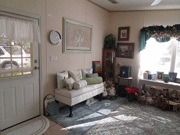 This very nice two bedroom two bath home has a newer 2008 roof, 2019 A/C and 2020 hot water heater. The front sitting room has lots of light and the kitchen is nicely sized. The Florida room looks out over the field with lots of birds and deer. This is a must see home in a park with lots of amenities.