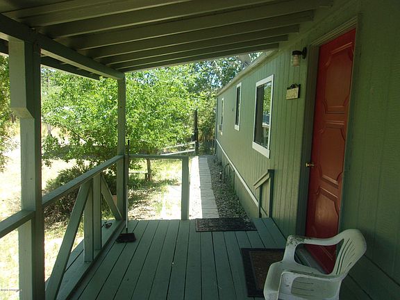 CAMP VERDE, 2 bedroom 2 bath on large corner lot. Fenced around the home. Close to Clear Creek. This elevated home is surrounded by Sycamore and Cottonwood trees and is situated on a partially fenced corner lot. Home features an open living room, large bonus/flex room, kitchen/dining room combo and small breakfast bar. Master is roomy and master bath has large oval tub and shower. Guest room has individual AC and guest bath has tub/shower. Home has front and rear covered decks, perfect for watching wildlife. Additional building has a small studio with additional storage and a covered carport.