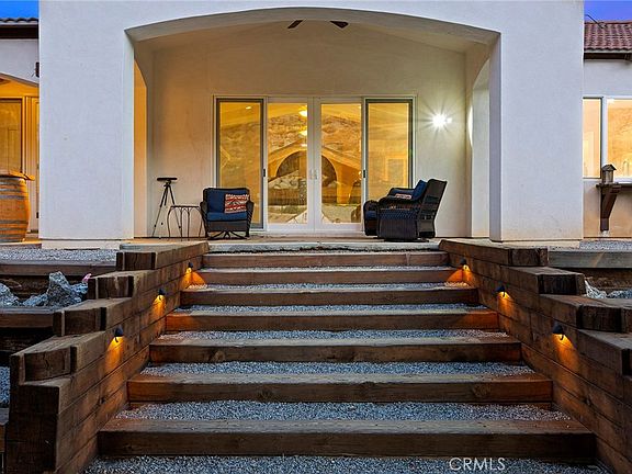 This gorgeous and turn-key single story “ranch style” horse property is situated on 7 acres in the beautiful Juniper Flats area. No expense was spared in the upgrading of this custom home. From the second you enter between the custom-made iron gates you are whisked away to a place and time where homes were built with a craftsmanship meant to last. The travertine flooring that is installed throughout the home is done so in a Versailles pattern which, combined with the large wood-beamed ceilings, makes the homes interior appear very large in size. The chefs’ kitchen comes complete with copper sinks, upgraded interior lighting, custom cabinetry, a water softening system and brand new stainless steel Kitchen-Aid appliances. The layout is perfect for multi-generational living with one full bed and bath on the opposite side of the home. The master bedroom is fit for a king and queen complete with French doors, a jetted tub, a dual head walk-in shower with a rainwater shower head and a cedar-lined walk-in closet. The 4000 gallon well holding tank and 40 panel solar system cuts down considerably on costs to maintain this vast and spacious property. The outside of the property is absolutely breathtaking surrounded by mountain views and picturesque sunsets, perfect to relax and wind down in the jacuzzi and watch them each night. This is the perfect time to live "off the grid" and have the privacy you have always desired in a low tax and NO HOA community. Come see it today!