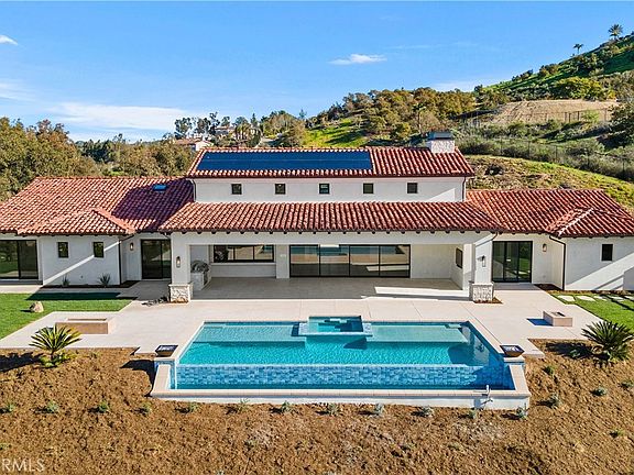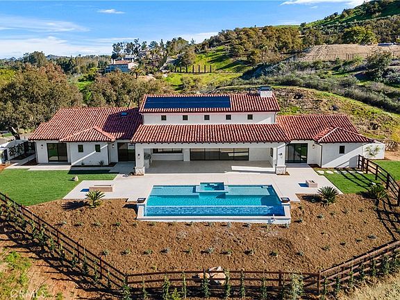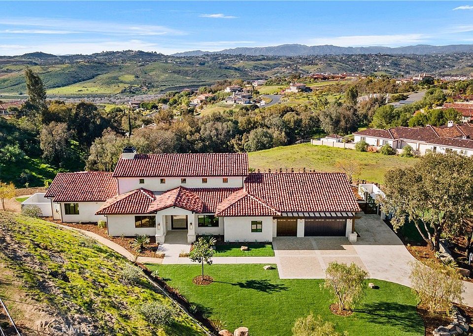 NEW YEAR, NEW PRICE, NEW CONSTRUCTION, MOVE-IN READY, and A STUNNING MUST SEE! - “Bella Vista” “The Beautiful View,” is the breathtaking 4,435 sq. ft. New Luxury Estate that perfectly captures the essence that has become the hallmark of a Ford Legacy Home. Beth Ford designs estate homes of sophistication, originality, and artistic detailing that is simply unparalleled. Located in the exclusive gated community of Lake Vista Estates, in the picturesque North San Diego County enclave of Bonsall CA., this exquisitely designed modern California hacienda, is inspired in the vision of the classic Santa Barbara esthetic. Nestled on approximately 2.06 acres overlooking lush valley foothills with dedicated open space for unencumbered privacy, this west-facing lot is the jewel of the exclusive Lake Vista Estates community. Offering 180º degree panorama coastal valley sunsets 365 days a year, Bella Vista’s large open floor plan is created with an eye on elegant outdoor living within Bonsall’s mild Mediterranean climate. This NEW CONSTRUCTION Luxury Estate offers the rare opportunity of ONE LEVEL OPEN CONCEPT LIVING in a perfectly mastered 4 bedrooms/5 bath floor plan. Bella Vista’s Great Room features its 20 ft high ceiling, a massive 24 ft-4 panel vanishing glass door for a seamless outdoor transition to a massive 1,100 sq ft heated covered patio, a vanishing edge saltwater pool, heated Spa, outdoor BBQ, poolside side fire bowls, fire pit, citrus orchard and more. A Professional Chefs Kitchen hosts a Massive Waterfall Quartz Island, Custom resawn oak cabinetry, Quartz countertops, Professional Grade Wolf, Sub-Zero, and Cove appliances including wine refrigeration. A massive 12x7-three-panel sliding kitchen window, continues Bella Vista’s theme of elegant indoor-outdoor living, by offering an open-air cooking experience, also serving as a large pass-through for patio dining and entertaining. The Large Primary Suite features a modern Italian Tile hearth Fireplace, elevated Flat Screen TV, dual walk-in closets, and a stunning Glass enclosed Wet Room with a Zen Garden and Tranquil Water feature. Suite Bedrooms 2, 3 & 4 are spacious with ample closet space, while granite counters and fine fixtures complete each of the additional full baths and full bath powder room. Office space is generous with built-in cabinetry. Minutes from all essential needs, and World-Class amenities, “Bella Vista” is notably the one-of-a-kind gem in North County SD, that should not be missed.