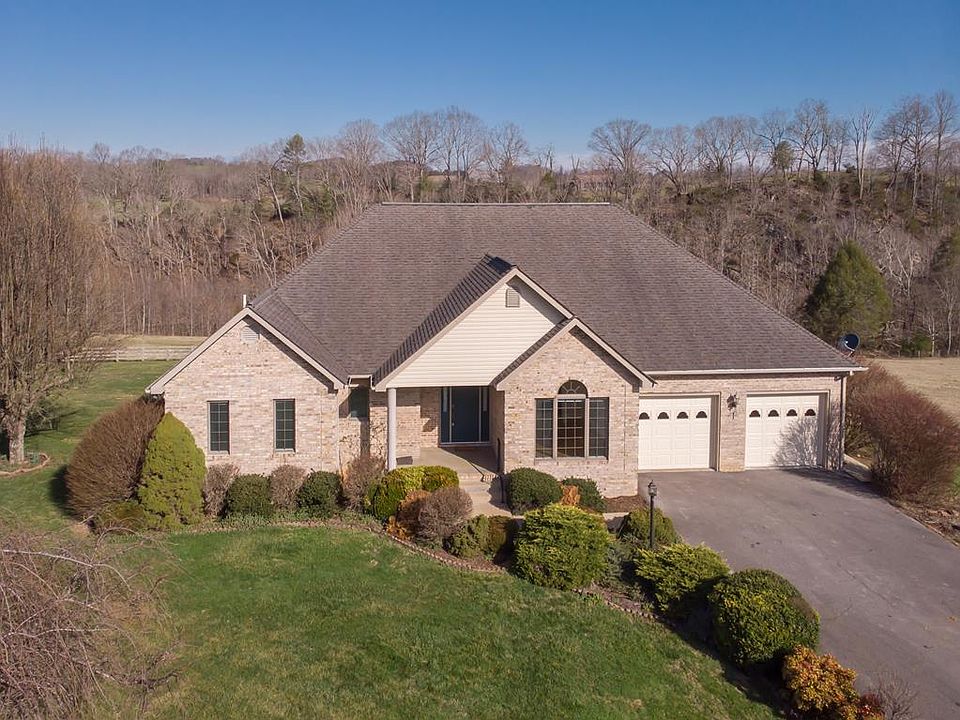 PEACE and TRANQUILITY await the new owner of this 4 BEDROOM/3 BATH home. Located on the South Fork of the Holston River, and 3 minutes from the VA Creeper Trail, this all brick home is an exceptional value with 5.86 ACRES. The home boasts beautiful HW flooring, an oversized GR with a brick, gas log FP, a large eat-in kitchen with cherry cabinets, tile backsplash and newer SS appliances. The main level features a primary bedroom ensuite with a spacious walk-in closet, 2 additional carpeted bedrooms, a second full bath, a dining room and laundry room. Upstairs is the perfect spot for a home office, privately tucked away from the main level. Downstairs is a full basement, with a 4th bedroom, a 3rd full bath and a den/family room with a wood-burning FP. The unfinished section of the basement has a workshop and great storage. There's also an attached 2 car garage, a 3 car detached garage and 16 x 20 barn for extra storage.