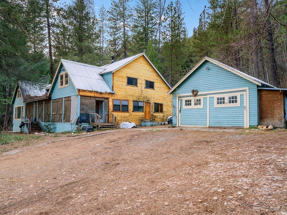 Diamond in the Rough! Sitting on 5.29 acres of forested land, this home is just a couple minutes from breathtaking swimming holes on the yuba river. Lovingly referred to as The Blue House. This home boasts 4 bedrooms and 3 bathrooms with a huge upstairs unfinished attic that could be finished for additional living space. You will see quality construction, hardwood floors throughout the home. You will find an oversized, detached garage and a large storage shed in the back with electrical hookups for an RV. With some cleanup and updated finishes, this house could be an excellent place to call home, a fantastic vacation retreat, or an investment property. See it today!