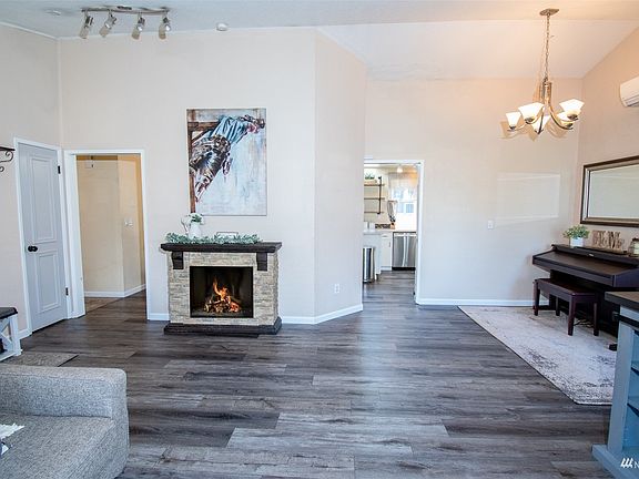 Absolutely CHARMING & BEAUTIFULLY updated Rambler!! 3 BR, 1.75 BA - MOVE IN ready home on a quiet loop street. Kitchen features soaring ceilings, stainless steel apps, lots of counter space & dining area too! Vaulted Ceilings in Kitchen, Living Room & Dining Room. Living room with COZY electric FP that stays! Gorgeous LVP just installed throughout the ALL Living Areas, Kitchen & Bedrooms! Spacious Primary BR w/walk-in closet, private bath w/walk in tiled shower. Both bathrooms have been updated w/gorgeous tile! Level, fully fenced backyard w/expansive deck - an AMAZING yard that is perfect for entertaining. Lg storage shed stays too. Keep cool in the summer w/Mini split A/C system! This home won't last! Easy access to Boeing & shopping.