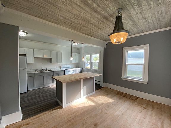 Beautiful 4 bedroom/1.5 bath remodeled home with maple hardwood throughout main floor. Butcher block island, updated fixtures, enclosed porches in front and back of home, extra-large two-story outbuilding used for garage parking or a workshop, new windows, updated electrical, newer roof, and plenty of backyard space for a campfire or entertaining.