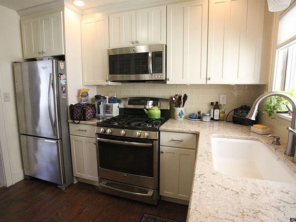 Classic Bungalow with updated Kitchen w self closing drawers, stainless steel appl, quartz countertops, unique ceramic tile flooring, LR has a wonderful wood fireplace, DR w an extra nook for your furniture or desk, 2 BR's on the 1st floor & full bath. Reading area & great enclosed front porch enhance the 1st floor. The 2nd floor has a very large bedroom perfect for a few beds, walk-in closet. Gorgeous landscaped grounds w deck overlooking above ground pool, off street parking - It's just perfect !!