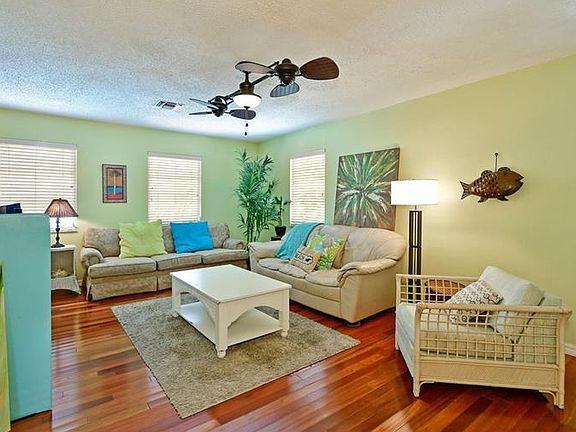 LARGE, BEAUTIFUL 4-BEDROOM TOWNHOME. Short walk to the beach. EXCELLENT VACATION RENTAL HISTORY and rave reviews from guests. Located in a short-term rental zoned area. The ease of condo living with maintenance free yard and pool. This home has been updated with many newer features/appliances and brand-new a/c unit. Truly unique/ the feel of a home with a pool only shared with one other unit, but the ease of maintenance free pool and yard so you can enjoy your time on the island. Sold completely turnkey furnished in contemporary coastal style. Plenty of room for your guests and friends or family. This fully furnished home has you ready to enjoy for yourself or use as income rental. Over 2000 square feet of living space, 4-bedroom, 2 baths. Elegant Brazilian cherry wood floors downstairs and exquisite wide plank tiger wood floors upstairs. New carpeting in 2 upstairs bedrooms. Highly desired brand-new porcelain wide plank hand scraped wood look tile in kitchen and both bathrooms. Private front and back elevated patios. Huge caged 15 ft x 31 ft heated pool with brand new pool heater. 2 short blocks to the sugar sand beaches of Anna Maria Island and a canal at the end of the block. Walk to the free trolley stops. Large garage has room for all your beach toys; biking, golf cart, kayak and/or 2 cars etc... Parking 2 more spots in driveway. More like single family living with all the benefits of condo living. Be sure to ask your Realtor of the numbers and buy this PEACE of paradise today!