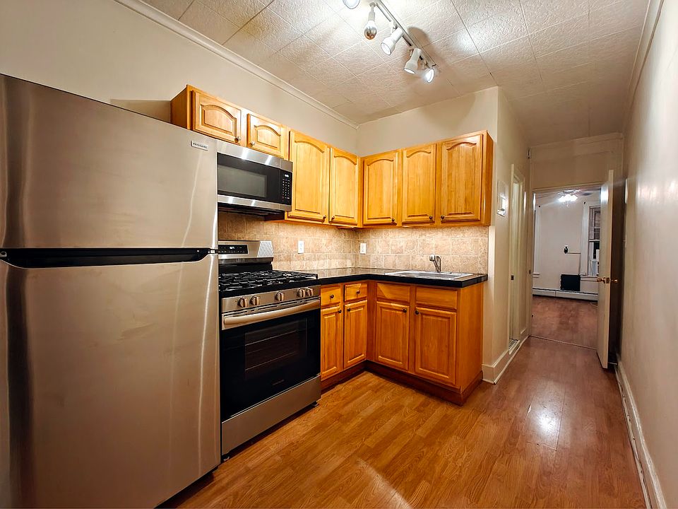 This NO FEE bright, 500 square foot one bedroom apartment, a 3rd floor walkup, is located in the quiet Hamilton Park neighborhood of Downtown Jersey City. It has 9 foot ceilings, oak laminate floors, modern windows, and an updated kitchen with brand new stainless appliances, a granite countertop, and room for a table for 2. The neighborhood is bustling with new restaurants, pubs and galleries. A convenient 12-15 minute walk can take you to the PATH and Light Rail stations, ferries, the mall, several farmers markets and the full size Shop Rite supermarket. A Home Depot and art supplies are also nearby within walking distance. Shady five acre Hamilton Park with basketball and tennis courts is 2 blocks away, and lively Hoboken, Newark Street restaurants, or 1,100 acre Liberty State Park are easily accessible by foot, light rail or (personal favorite) bicycle. This is a 3rd floor walkup 1br. Rent is $2180 per month, 1.5 months security deposit. Tenant pays own electricity, and gas for heat & hot water. There is a Google Nest internet thermostat. Comcast Xfinity cables are already installed in the unit, as is a Verizon FIOS modem. There is no laundry in the unit or building, a laundry (with drop off service) is located a half block away. Please note regarding photos: The fully furnished photos are just to help visualize how furniture fits in the rooms. There is no mirrored armoire anymore, photos will be updated soon. We run full credit and background checks, and require yearly household income to be at least 3x yearly rent. Sorry, NO DOGS Not negotiable. No Smoking in building.