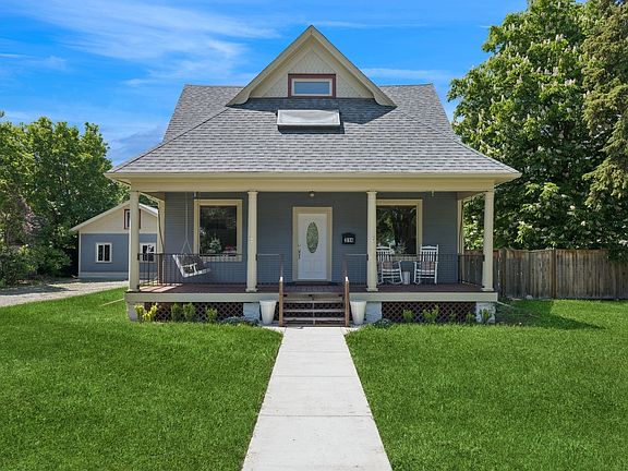 Situated on two city lots, this transitional Colonial Revival home was built at the turn of the century and is on the National Register of Historic Places. Located on the west side of Kalispell, the “Hodgson House”, as it is known, exudes classic charm and comfort with tasteful updates that feature functionality, quality and character throughout. With a perfect blend of timeless design and modern comforts, this home features a main floor bedroom and 3/4 bath that are set up for handicap use. Upstairs offers 3 additional bedrooms, 2 bathrooms and a laundry area. The kitchen has been stylishly updated boasting a Wolf gas grill, pasta filler and modern finishes that blend perfectly with the home’s vintage charm. Original hardwood floors are bathed in sunlight from the large windows. Tongue and groove ceilings add a classic, authentic and cozy charm in several rooms throughout the home. The entry features an open porch spanning the front with a swing creating a welcoming and inviting space for relaxing or entertaining.