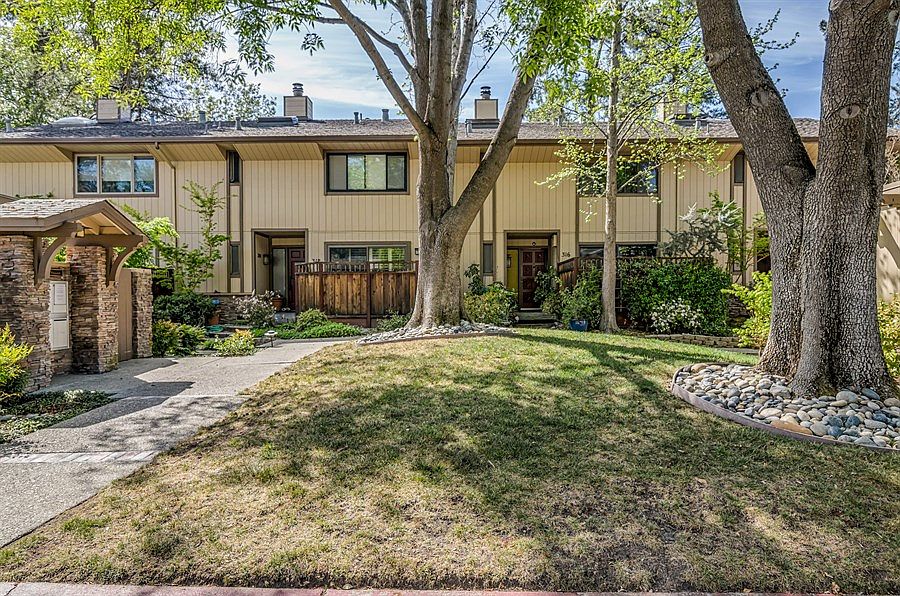 Walk to downtown. Hike or bike the Iron Horse Trail. Desirable neighborhood with towering redwoods. Elevated Brazilian teak deck overlooking tree-lined creek. Open and inviting floor plan. Remodeled with quality materials; granite and marble countertops, hardwood and travertine flooring, new carpet, crown moldings, Anderson doors and windows.