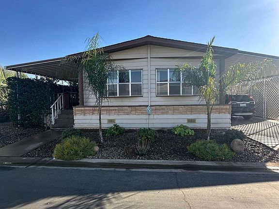 Beautiful triple wide with tons of updates through out the home. Two masters suites and one with an extra huge walk in closet and bonus office space. Energy saving ,newer water heater, updated flooring in the laundry and the kitchen. New dish washer newer applianes(fridge, washer, and dryer). It comes with a private patio and lots of fruit trees. Passion friut, asaian pear, lemon, guava tree, cherry trees , olive tree, palm tree, buddha land tree, herbs, and auto irrigation. Dont miss this chance to buy a wonderful mobile home.