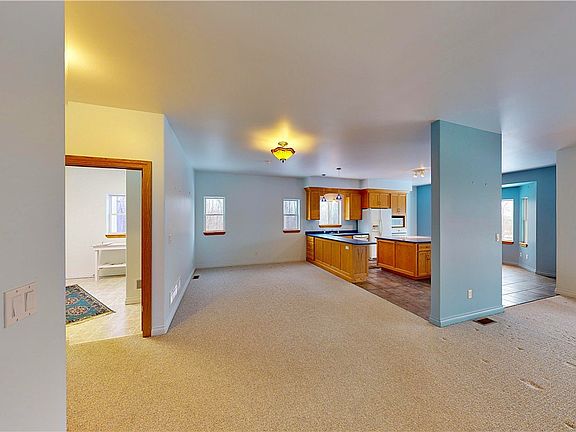 - Separate/Formal Dining Room, Country Kitchen, Kitchen Island, Living/Dining Room, Solid Surface Counters, Bedroom on Main Level, Main Level Primary, Primary Suite