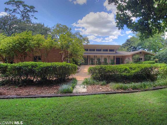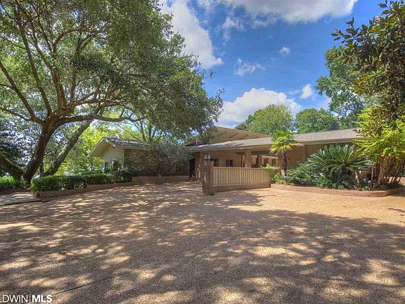 This bayfront home is a masterpiece built with impeccable charm and detail. The estate lot features over 160 front feet on Mobile Bay with an incredibly wide sandy beach. From all rooms of this home, the bay shines through. Oversized great room, formal dining room with whitewash vaulted ceiling and separated by a see-through wood burning fireplace and built in cabinetry. Bedrooms are split. Oversized master with an enormous walk-in closet. Fourth bedroom is staged as an office but can easily convert to a bedroom. Guest suite is located off of carport and has built in stove, refrigerator and separate bath. Relax and soak up the sun by the luxurious pool, barbeque for a large crowd and enjoy your sunset on the bay. Easy commute to Mobile and downtown Daphne.
