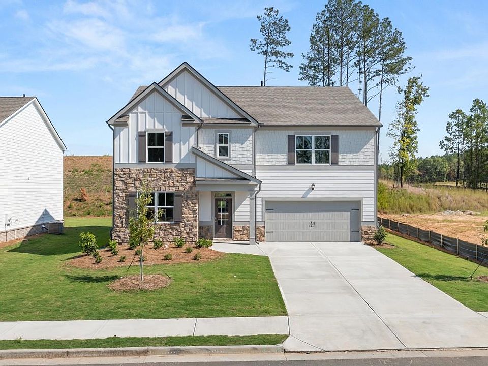 314 Belmont Drive in Cartersville, GA is one of our available Halton plan homes in the Parkside at Carter Grove Community. When you enter the home there is a bedroom and full bathroom, perfect for guest or an office space. This kitchen is the highlight of the home with white cabinets and granite countertops. An oversized island separates the kitchen from the family room. Cozy up to the fireplace that sits in the center wall of the family room. As you go to the second floor, you are greeted with an open loft area. There are 2 more bedrooms and a full bathroom off the loft area. The primary bedroom features a luxurious bathroom with granite topped, dual vanities and separate tub and shower with a huge walk-in closet. The desirable city of Cartersville offers nearby parks and tons of activity. The Woodland Hills Golf Course is right at your back door! Unbeatable amenities like a clubhouse, tennis courts, junior Olympic pool with kiddie mushroom, and more! New amenities are on the way, while the current amenities are available for use. Photos for illustration purposes only- not of actual home.