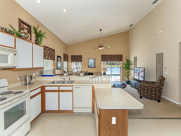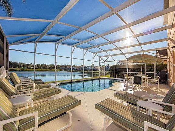 Water Front South Facing Furnished Pool Home in Hampton Lakes!! This Property is Meticulously Maintained, Spacious, Nice and Bright, and a Wonderful Floor Plan. The Private and Large Pool Overlooks Hampton's Lake and is Surrounded by a Very Large Deck for Lounging. Games Room in Garage. The Interior offers a Downstairs Master Bedroom and a Den that can also be used as a 6th Bedroom, a Fabulous Dining Area, and a Large Family Room for Relaxing or Entertaining. 4 Nice sized Bedrooms upstairs makes this Property an Ideal Home for a Primary Resident or for a Vacation Home. Hampton Lakes is Zoned for Short Term Rentals. Hampton Lakes is Located convenient to Disney, Shopping, Interstate 4, Medical Facilities, and Restaurants. SELLER WILL PROVIDE A HOME WARRANTY TO BUYER.