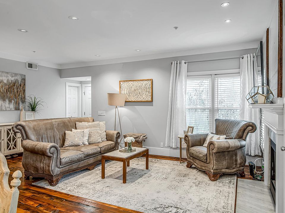 This stunning, corner-unit condo is completely renovated and features marble countertops, a kitchen island, reclaimed hardwood floors from a bourbon barrel factory, shaker style cabinets, a gorgeous farmhouse sink, two entirely modernized bathrooms, and more! Whether you are energizing yourself with a morning coffee or unwinding with a glass of wine at the end of a day, the oversized, corner balcony overlooking the pond fountain and green space will provide the zen experience you are looking for. Truly a one-of-a-kind opportunity in the highly desired Burton Hills community!