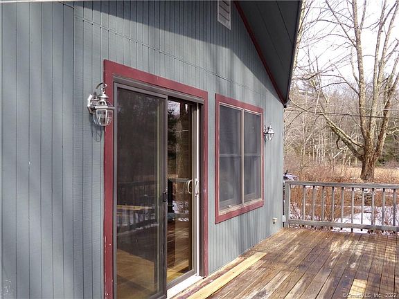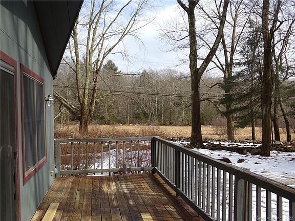 So close and yet so far Quiet country living and still only 15 min from I-84 and I-395 and the MA border Enjoy the peace and tranquility of this open concept 3bd/2ba ranch style home. Vaulted ceilings accentuate the open kitchen/living/dining room area which opens to an18x32 wrapped deck. Center island with breakfast bar makes this a great space for entertaining. Hardwood floors, updates to the main bath and fresh paint throughout, as well as NEW WINDOWS and radon system make this home move in ready. Lower level has full bath giving unlimited possibilities to expand the living area. Cut energy costs with the 60k BTU Harmon pellet stove located in the basement. Large 12x14 outbuilding for all your outdoor storage needs. Enjoy the sight and sounds of the neighboring pond from the deck or fire pit area. Surrounded by stone walls and mature plantings this home is ready for spring and is a must see