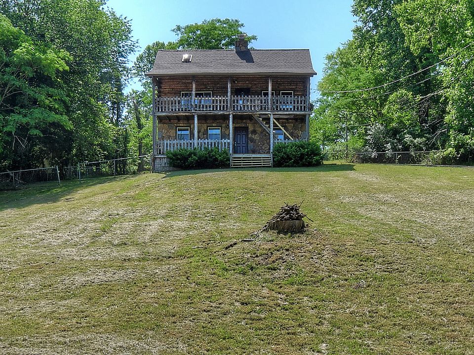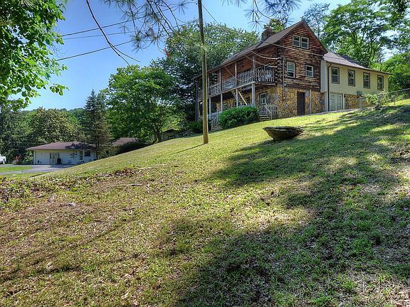 Lovely Log Cabin in a peaceful setting near the water! There are two front porches to enjoy evenings with friends and family as well as a side porch that has stairs out to a fairly level back yard. This home is sprawling with space. There are 3 bedrooms, an office, and 3 full bathrooms with 2 additional spaces downstairs that could be used for sleeping quarters. When you enter the front door you are greeted with a fireplace and vaulted ceilings. There have been updates on this home in the bathrooms and kitchen. The stainless steel appliances and new cabinets make this the perfect place for entertaining. There's a bedroom and bathroom on the main level. Upstairs you will find 2 additional rooms and a bathroom. Downstairs in the walkout level basement is a large den that has been freshly painted and has new flooring. The fireplace creates an inviting atmosphere. An additional bathroom is in the basement as well. This home is the perfect mix of rustic and new with a view and mature trees. Buyer/Buyers Agent to verify all information.
