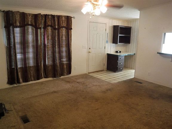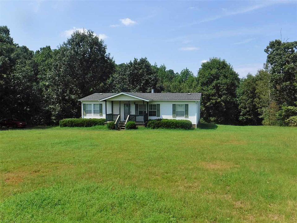 Very affordable Doublewide mobile home on large 1.49 acre double lot being sold "as-is". Owner isn't able to make any repairs/improvements. Home is livable, mainly cosmetic work needed. Home sits back off road and has good mixture of open area and trees to maximize privacy. Living room with wood burning fireplace, eat-in kitchen, separate laundry/mud room off kitchen, and master bedroom with recently remodeled master bathroom. Storage building. Call for details.