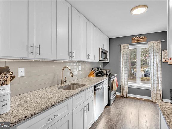 Welcome to this delightful 2-bedroom, 1.5-bathroom townhome located in the highly sought-after Terrestria neighborhood! Enter through the front door and be greeted by the wonderfully updated and fully equipped kitchen. The ample white shaker-style cabinetry, sleek granite countertops, and stainless steel appliance package are perfect for all your cooking needs. The open-concept living and dining area provides the ideal spot for both relaxation and entertaining. Enjoy the beautifully tiled fireplace and hard wood flooring that extends throughout the entire home. The primary and secondary bedrooms upstairs provide plenty of closet space and serve as perfect retreats after a long day. The addition of an upstairs washer and dryer offers extra convenience, being close to both bedrooms. Also upstairs, the full bathroom features the same shaker-style cabinets and granite countertops as the kitchen, along with a modern tile shower. A fully finished basement is perfect for entertaining, with a built-in bar and plenty of room for entertaining. Walk out to the patio area, which is private and ideal for relaxing while enjoying the serene view of the woods, stream, and wildlife. Perfect for those seeking comfort and convenience, this home is ideally located within close proximity to local parks, shopping centers, dining, and schools. With easy access to major roads, commuting to nearby areas is a breeze. Don’t miss the chance to make it yours—schedule a tour today!