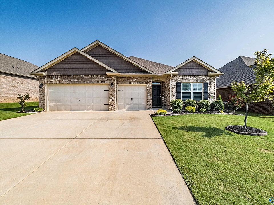 All the updates you would want in this 3 year old Kathryn plan in Madison City schools. 4BR, 3BA full brick home with all the bells and whistles including Gas Range, vented microwave, master bathtub, Gas fireplace, tankless hot water heater and fully fenced yard. Large secluded master with spacious ensuite. Awesome 3 way split floorplan with 2 additional BRs sharing a bath on the other side of the living space. The front has another BR with another ensuite bath. Storage galore throughout the home. Kitchen refrigerator, washer/dryer & LR TV remain. And a 3 car garage plus a whole house water system. Better value than new with all these extras. Please ask about Incentive Rate available.