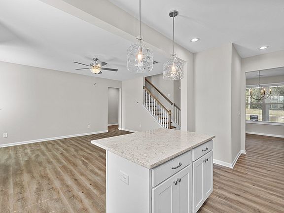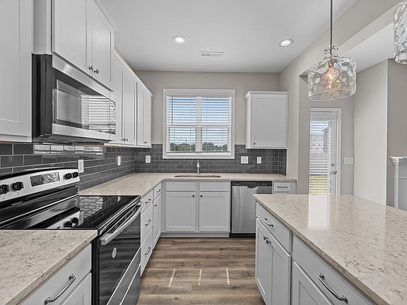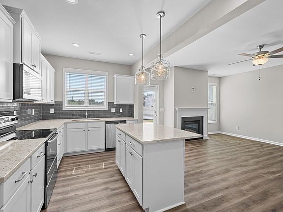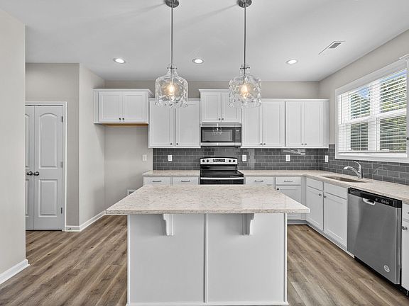 MOVE IN READY! 6' Privacy Vinyl FENCED BACKYARD! NO HOA! WINDOW BLINDS! Waterproof LVP Flooring Thru Main Living Incl Guest Suite! Dramatic 2-Story Foyer! Kitchen: Granite Countertops, Dark Gray Subway Tile Backsplash, White Painted Custom Cabinets, Window over Sink, Island w/Breakfast Bar & Pendant Lights, Recessed Lights, SS Appls & Pantry! MasterSuite: w/Separate Walk in Closets! MasterBath: Dual Vanity w/Cultured Marble, Custom Cabinets & Step in Shower! FamilyRoom: Slate Surround Gas Log Fireplace & Access to Rear Patio! Spacious Secondary Bedrooms!