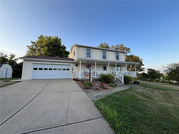 What a View From This Lovely And Spacious Front Porch!! Sitting Up On The Hill This 3 Bedroom, 1.5 Bath Colonial Home Offers So Much! 2 Car Attached Garage, Kitchen/Dining Room Combo Provides So Much Cabinet Spaces, Large Island, Granite Counter Tops, SS Appliance, Well Designed Layout For Relaxing In Or Entertaining Guests, Glass Doors Out To Large Sunroom Is A Great Addition Providing So Much Natural Light, Stamped Concrete Patios On Each Side Of Sunroom, SGD Out To Hot tub, Other Side Offers The Views Of The Area And Mountains In The Distance ! Shed, First Floor Powder Room, Living Room Offers Gas Fireplace For Ambiance To This Space, Laundry Is Near The Bedrooms Adding Convenience, Three Nicely Sized Bedrooms, Large Hall Bath Has Separate Jetted Tub, Shower, Linen Closet, Custom Cabinets, A Room In Itself! Partially Finished Basement, Enormous Amount Of Storage With Doors Leading Out to Side Yard!!