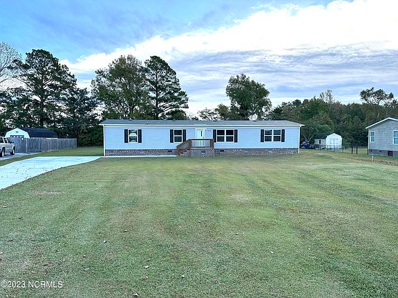 314 Chickory Ct in Stella, NC is the perfect place for a new family to settle down. This manufactured home was built in 2021, so it's only two years old. It has four bedrooms and two bathrooms, making it ideal for a growing family. It is on permanent foundation and is located in the Stella Farms neighborhood. This home's island-style kitchen is open to the living room and dining area, which makes it easy for everyone to get together. The large windows throughout this home let in lots of natural light. Outdoors, the back yard has plenty of grass space for kids or dogs (or both!) and the concrete driveway can fit multiple cars. Other benefit of the location is White Oak Elementary and Croatan High School Districts are both within the same school district as this home. If you're looking for a family-friendly neighborhood, then this home's country-quiet location will give you exactly what you need. The home is only offered for a limited time, and if not sold the seller will market the home for rent. The price is reduced to $222,900.