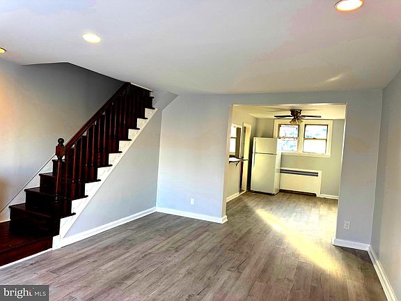 Nice townhouse ! Enter into a bright living room with a bay window and recessed lighting. The dining room has a ceiling fan and a cut out to the kitchen. The kitchen has recessed lighting and a granite countertop. Use it for serving or add some stools making it a convenient way to sit down and enjoy a meal. granite countertop and to add a little modern touch, track lighting! The basement is partially finished which can be used as a playroom, office or that added room for TV viewing, just use your imagination. Laundry facility in the basement with a walkout and parking for one car as well as a one-car garage. Upstairs has 3 bedrooms. the master bedroom has a ceiling fan. The hall bath.. hardwood floors throughout. Connivence location , close to 69th street train stations, buses, trolley, schools and shopping center. Motivated seller priced under market value.SOLD AS IS CASH OFFER ONLY