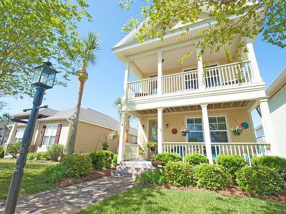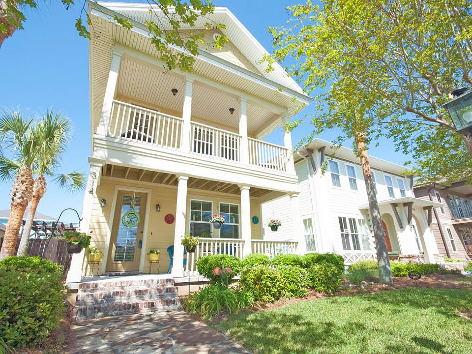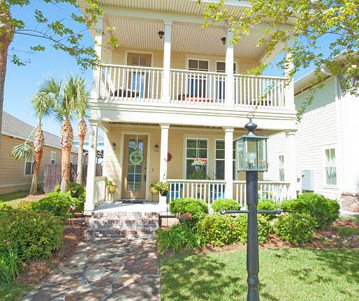 Gorgeous 3 bdrm, 2.5 bath, 2,100+sqft home located in the desirable neighborhood of Tapestry Park. Spacious kitchen with stainless Kitchen Aid appliances, gas stove/oven, living stone countertops, and breakfast bar. Hand scraped hardwood flooring throughout, custom brick dining room wall, built-in maple entertainment center in living area. Adjacent to the kitchen is the office with it's own door that leads outside to the pergola & fenced-in yard; great for grilling out and entertaining. On the second level is the master bedroom with ample closet space, private balcony, and double vanity with walk-in shower. Two additional bedrooms with Jack and Jill bathroom. Eight foot doors and plenty of storage space. Tapestry Park is located in the heart of PCB... walking distance to the beach and