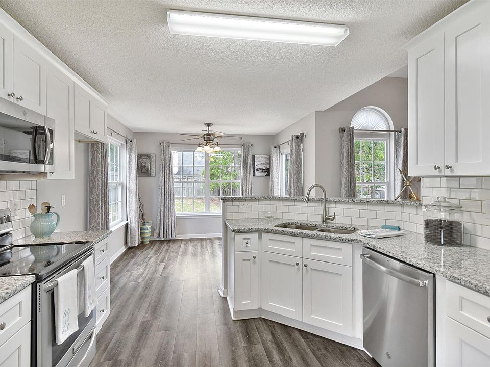 Gorgeous Updates! 4 Bedroom, 2 Bath Home! Kitchen has been Fabulously Remodeled: Beautiful New Granite Countertops, White Subway Tile Backsplash, New Pristine White Cabinets, New LVP (Luxury Vinyl Plank)Flooring, New Micro, New Faucet with Sensor shut off & Freshly Painted. In fact, Whole Interior has been Freshly Painted! More to appreciate: New LVP Floor extends into Eat In Kitchen, Dining Room as well as Foyer. You'll notice New Trendy Light Fixtures in DR & Foyer. Off the Eat In are Sliding Doors w. Retractable Screen leading to Nice Patio & large Fenced In Backyard to Enjoy Grilling & Play. Great Room has Wonderful Vaulted Ceiling w. Ceiling Fan. It is Spacious & has Romantic Gas Log Fireplace. Master is on the Main floor & has Big, Dedicated Sitting Area, Walk In Closet & En Suite. The En Suite has New LVP Flooring, New Shower Door for separate Shower, New Faucets on Double Vanity, & Soaker Tub!! 2 more Bedrooms w. Ceiling Fans & Shared Bath w. Many Updates & New LVP Floor!! Upstairs, 4th Bedroom OR Playroom/Man Cave/Craft Room. Does have Walk In Closet, Ceiling Fan & Built in Shelving. Pretty Brick Front, New Front Door Unit & Well Landscaped! Home is Immaculate & Ready for New Owners! Roof 2013 & HVAC 2015 (both under warranty). H20 Heater 2013. New Smoke Detectors except 1 hardwired in DR connected to Security System. 1 yr HW. Neighborhood offers Pool, Tennis Courts & Playground w. Low HOA fee. So close to Shopping, Restaurants, Schools, etc. Don't Wait! This is it!