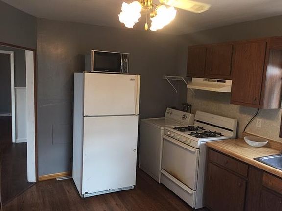1 car attached garage, large back yard, with a patio, fire pit, and garden area. There is an open city lot to the North. All new vinyl flooring in living room and both main floor bedrooms. New carpet and fresh paint upstairs on the second floor. Fresh paint throughout. There are 2 wall A/C units on main floor and a new hot water heater. Home comes with washer/dryer, refrigerator, microwave, and gas stove. No basement to worry about water issues. No smoking. Pets are negotiable. Tenant is responsible for all utilities, lawn mowing, and snow removal. Owner pays garbage.