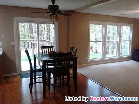 White two story traditional with 2 car garage and amazing backyard. Updated kitchen features wood floors and stainless steel appliance package. Media Room with projection TV remains for your enjoyment. Family room features beautiful nature view and fireplace. Large master suite features sunken tub, separate shower and double vanities and a great walk in closet. Additional three large bedrooms upstairs with ample storage as well as the second full bath. Pets considered on a case by case basis. AMAZING backyard with kids play area and deck for entertaining. Call or text (for fastest response) Trish from Renters Warehouse with questions or to schedule a showing: 404-775-3995.