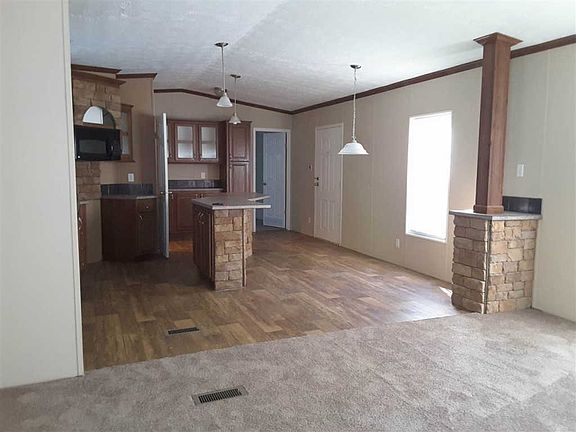 QUIET COUNTRY HOME WITH ACREAGE. More affordable than rent!!! You can own this Single Wide Manufactured Home which sits well away from the road on 2.12 acres of slightly sloped and wooded property, a very beautiful setting and privacy. HOME IS MOVE IN READY . Highly desired 3/2 split Bedroom plan. Gorgeous eat-in Kitchen has plenty of cabinets and stone accent on a custom sized Island and a few selected cabinets have glass fronts. Outside you will find 2 storage sheds which will convey with sale. This Land/home package has been refurbished and presented in almost new condition. Being sold "AS-IS, WHERE-IS". Possible owner financing for those with less than perfect credit. Contact Listing Agent with any questions or concerns.