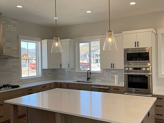 Beautiful new construction in Midway. 4147 sf finished, over 5000 sf total. Just two blocks from charming Main Street. Main level master with 2nd laundry area in the master closet. Main Level office or 5th bedroom. Spacious covered patio off great room with gas lines for future built-in fireplace and BBQ hook up. Fantastic views of Timp. Massive garage including 10’ door on third car garage that will fit most boats. Professional landscaping of front yard to be completed this Spring. Downstairs game room along with a bedroom/bathroom, with another ~1,000 sf of unfinished basement to make your own. Plenty of room for another great room and theater or fitness room. 3% buyer's agent commission.