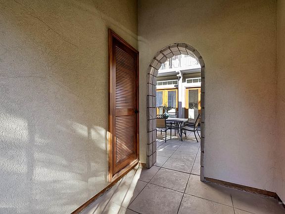 Nestled within the beautiful enclave of Paddy Row in downtown Eagle, this Italian-inspired villa seamlessly blends timeless elegance with modern luxury. Every detail of this architectural masterpiece has been meticulously crafted, from the hand-hewn hickory floors to the soaring ceilings and expansive windows that bathe the home in natural light. The gourmet kitchen features solid maple and granite countertops, and premium appliances, making it a chef’s dream. The great room, with its inviting fireplace, flows effortlessly to a serene courtyard with a tranquil fountain—ideal for memorable entertaining. The den with a fireplace, bar area, and office nook offers a private retreat. Additional highlights include a stunning main-floor primary suite, crown molding, a stately mini library, and custom wood-arched balcony doors. Recent updates include a new roof ('21), zoned furnace ('23), gutters ('23), and water heater ('18). The majority of the exterior maintenance and landscape is managed by the HOA. Welcome HOME.